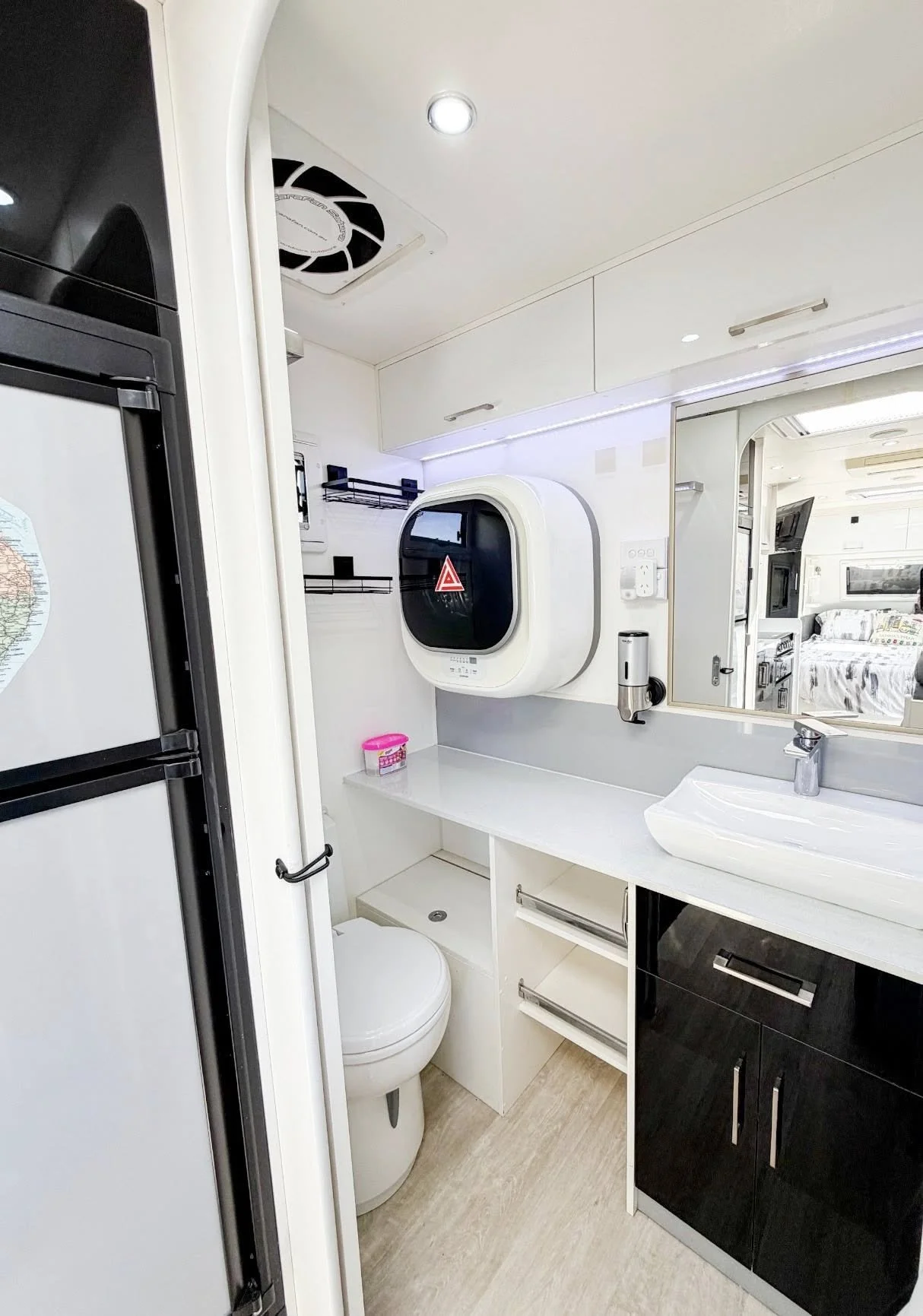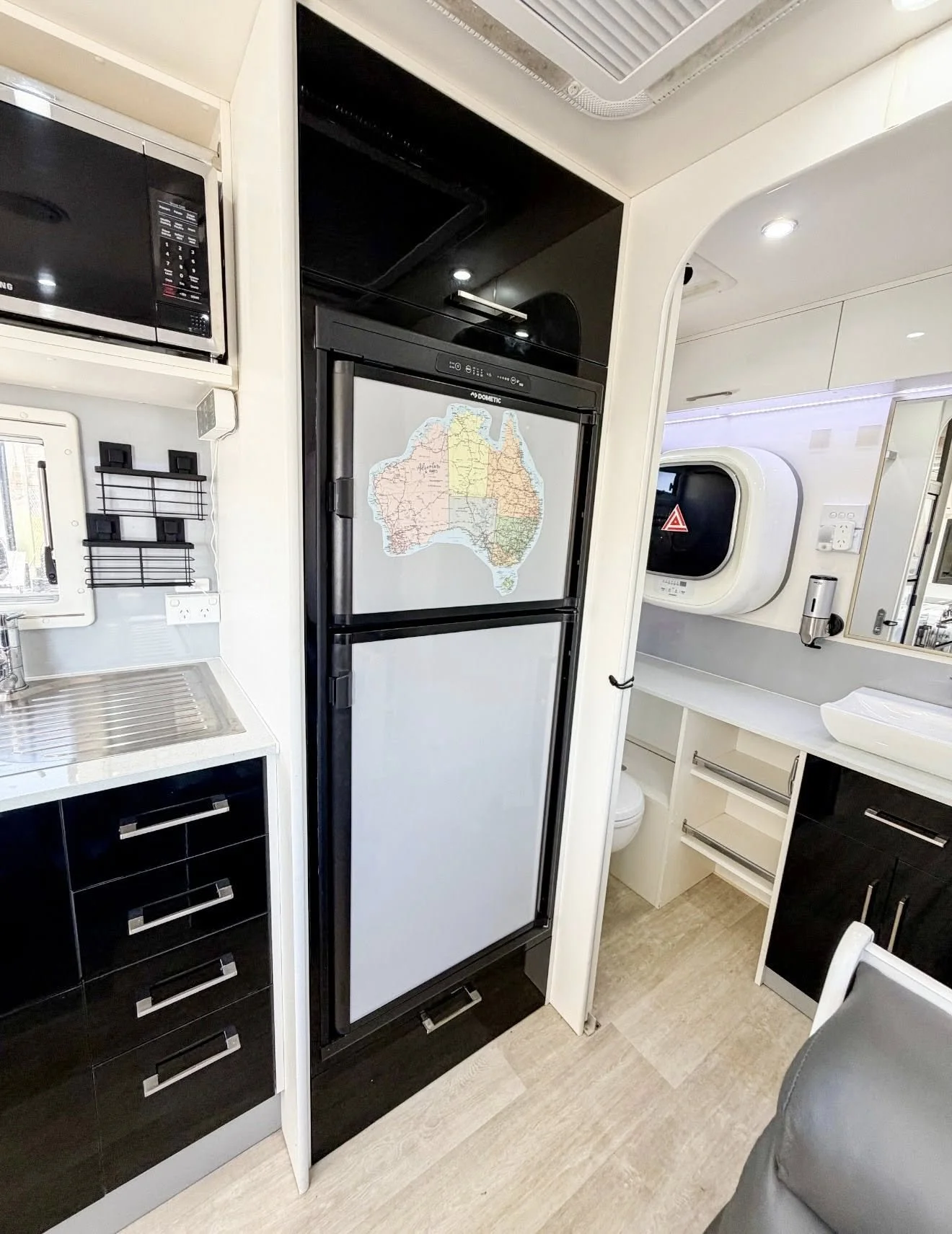 • 3-way fridge (12V / 240V / Gas) – Dometic